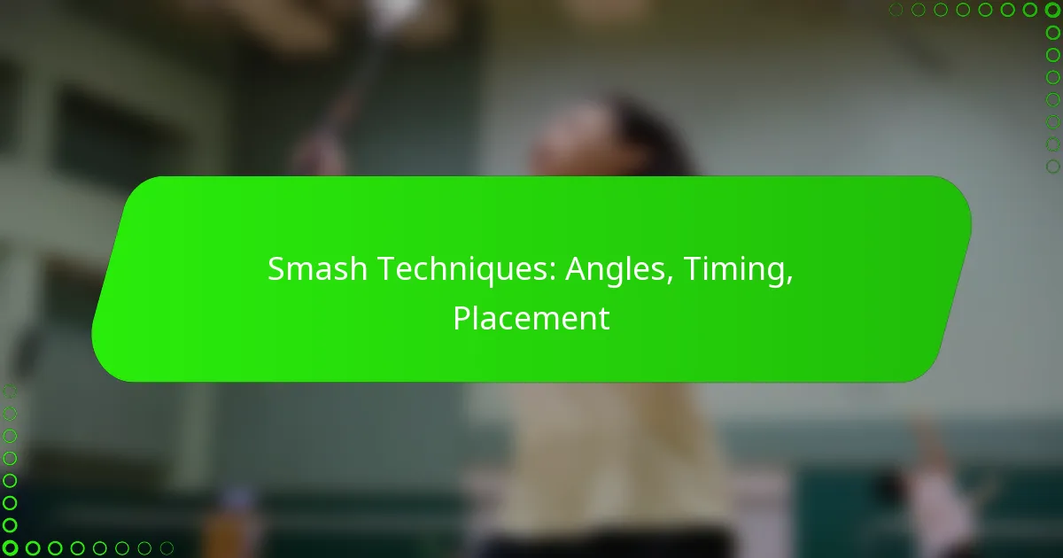 Mastering smash techniques involves a keen understanding of angles, timing, and placement to enhance performance in sports like badminton and tennis. By effectively utilising these elements, athletes can deliver powerful shots that challenge their opponents and exploit weaknesses on the court. Timing is essential for maximising both power and accuracy, while strategic placement can create opportunities for scoring by making returns difficult for the opponent.